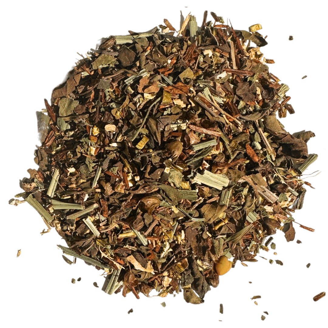 Luxury Ingredients: Green rooibos, Red rooibos, Tulsi (holy basil), Dandelion leaf, Dandelion root, Ginger, Fenugreek, Lemongrass, Liquorice root