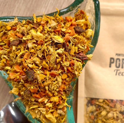 Ingredients: Ginger, turmeric root, carrot, beetroot, pineapple, calendula petals, natural flavours