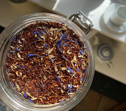 Naturally sweet without any added sugar, this rooibos and marzipan tea is perfect for winding down in the evening, enjoying as a guilt-free treat, or serving alongside cakes and pastries. Rich in antioxidants and low in tannins, it offers a soothing, velvety cup every time — whether you drink it hot or as a refreshing iced tea.